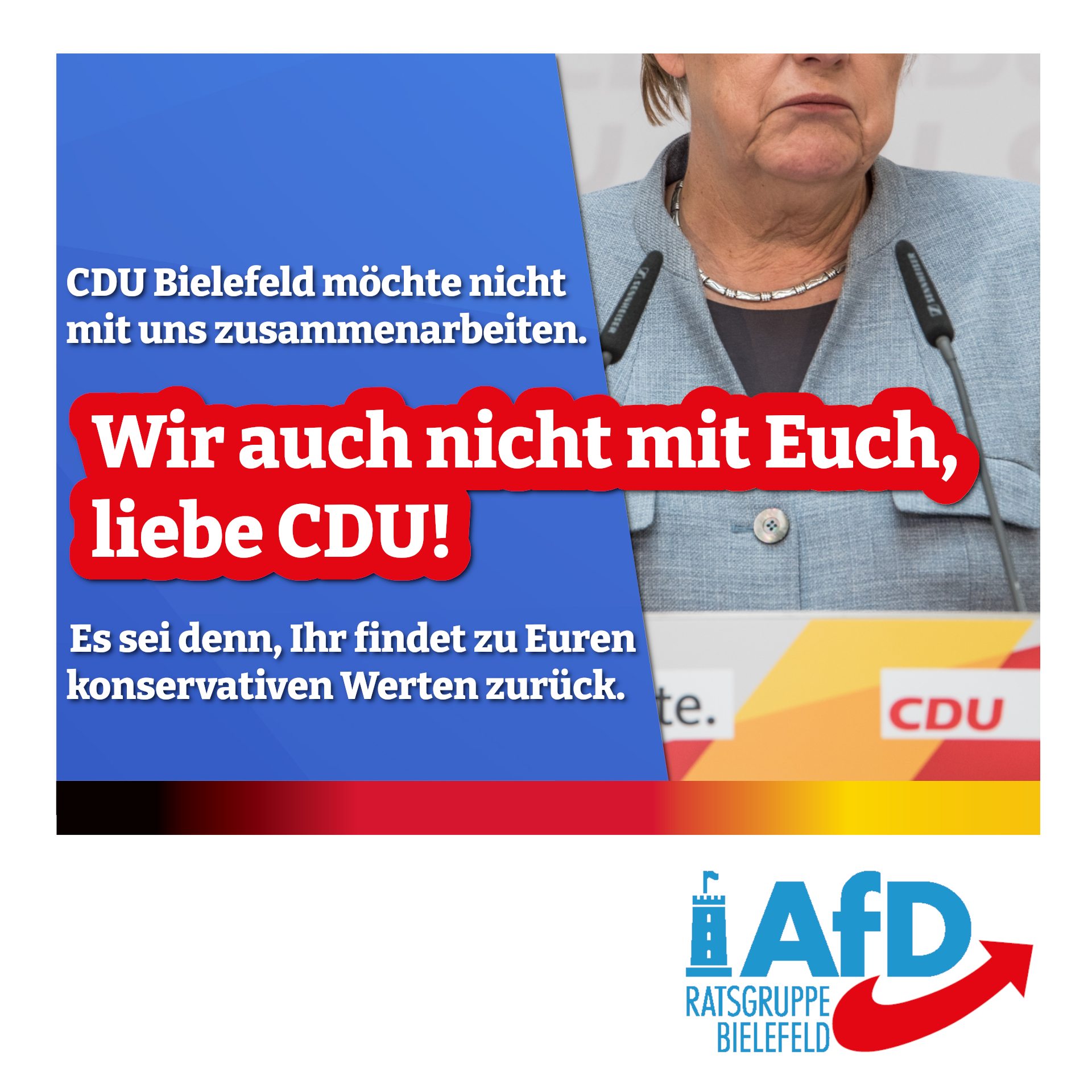 Zum Teil amüsiert und zum Teil erstaunt haben die Ratsherren der AfD-Ratsgruppe auf die Ankündigung der CDU-Fraktion Bielefeld, nicht mit der AfD zusammenarbeiten zu wollen, reagiert.Dr. Florian Sander, Vorsitzender der AfD-Ratsgruppe, konstatiert: „Die Bielefelder CDU ist in ihrer aktuellen Verfassung eine grüne Vorfeldorganisation, die in ihren Initiativen sowie ihren Reaktionen auf unsere konstruktiven Änderungsanträge das Interesse der Bürger hinsichtlich Sicherheit, Lebensqualität, Wohnraum und sozialer Schieflage ignoriert bis verschlimmert. Zum Beispiel hat sie kürzlich im Sozial- und Gesundheitsausschuss eine legale Heroinvergabestelle für hunderte Süchtige aus der ganzen Region mit beschlossen. Ein Änderungsantrag der AfD, in welchem gefordert wurde, die Auswirkungen der Drogenvergabe auf die Sicherheitslage der Stadt regelmäßig zu überprüfen, wurde abgeschmettert. Das alles ist umso absurder, als dass die Union sich dann morgen wieder als vermeintliche ‚Partei der inneren Sicherheit‘ hinstellt, die sie schon lange nicht mehr ist.“Der Vorsitzende der CDU-Fraktion in Bielefeld, Ralf Nettelstroth, kritisiert in seiner Stellungnahme in der NW die Grünen im Bund und konstruiert eine Distanz, die so de facto nicht existiert. Dabei regieren die Christdemokraten in NRW und fünf weiteren Bundesländern mit den Grünen. Außerdem kritisiert CDU-Mann Nettelstroth die Zusammenarbeit zwischen den Grünen und der Partei Die Linke in Bielefeld. Dabei scheint er zu vergessen, dass die CDU in Thüringen eine Minderheitsregierung aus Grünen und Linken unter Ministerpräsident Bodo Ramelow duldet.AfD-Ratsherr Maximilian Kneller erkennt nur ein Szenario, in dem eine Zusammenarbeit mit der CDU in Zukunft denkbar wäre: „Wir rufen die Christdemokraten auf, zu ihren konservativen Wurzeln zurückzukehren, Politik im Sinne der Bielefelder Bürger zu machen und aufzuhören über jedes Stöckchen zu springen, das grüne Politiker, die nichts Gutes mit Bielefeld und Deutschland im Schilde führen, ihnen hinhalten. Dieses dringend benötigte Loslösen aus links-grünen Denkmustern ist allerdings ein Kraftakt, der dem zahnlosen Papiertiger CDU nicht mehr zuzutrauen ist.“Somit nehmen wir das pflichtschuldige Statement der CDU-Parteiführung zur Kenntnis – auch wenn so manch ein Mandatsträger der CDU die Dinge vermutlich anders sieht. Das machen gute Kontakte zur Basis der CDU sowie zu einzelnen Funktionären in diversen Gremien deutlich. Dass die Betreffenden jedoch den Mut aufbringen, gegen ihre vergrünte Parteiführung aufzubegehren, ist derzeit stark zu bezweifeln: Die CDU wäre eben nicht die CDU, wenn dies anders wäre. Wir versichern daher, dass aktuell und in absehbarer Zeit seitens der AfD-Ratsgruppe kein Interesse besteht, mit der CDU zusammenzuarbeiten.