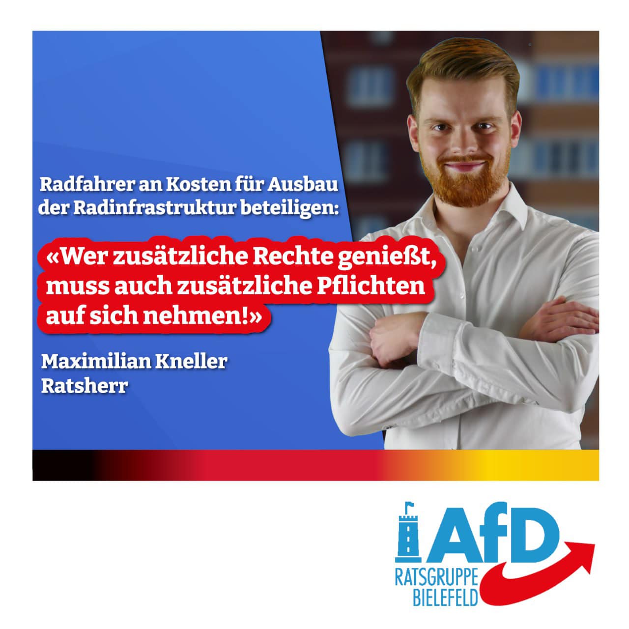 Die Stadt Bielefeld kalkuliert bei den Kosten für das geplante Fahrradparkhaus im Bunker am Hauptbahnhof mit 12 bis 14 Millionen Euro. Neben allen Fördergeldern wird die Stadt Eigenkosten in Höhe von mindestens (!) 3,5 Millionen Euro tragen müssen.Für diese Kosten muss die Allgemeinheit aufkommen, also auch Steuerzahler, die gar kein Fahrrad fahren oder besitzen. Maximilian Kneller, Ratsherr der AfD in Bielefeld, findet das ungerecht und hat eine Lösung parat: „In anderen Ländern respektive der Schweiz wird eine Kostenbeteiligung von Radfahrern auf Bundesebene diskutiert. Mehrere Politiker bringen dort parteiübergreifend einen Gesetzesentwurf auf den Weg, der eine Vignette pro Fahrrad und Jahr vorsieht, die etwa 20 Franken kosten soll. Das ist eine faire Lösung für alle. Wer zusätzliche Rechte oder wie im Falle Bielefeld ein exklusives Fahrradparkhaus bekommt, muss auch zusätzliche Pflichten auf sich nehmen. So ähnlich argumentieren auch die Schweizer.“Bereits im März des letzten Jahres fragte die AfD-Ratsgruppe die Verwaltung der Stadt Bielefeld, inwiefern geplant sei, Radfahrer am kostenintensiven Ausbau der Radinfrastruktur zu beteiligen, etwa in Form einer Vignette. Die Antwort fiel seinerzeit mager aus.Aus diesem Grund hat die AfD-Ratsgruppe Bielefeld auf Initiative von Maximilian Kneller eine neue Anfrage gestellt. Wir möchten wissen, wieviel Geld die Einführung besagter Vignette in die Kassen der Stadt spülen und wie stark sie den fahrradlosen Bielefelder dadurch entlasten würde. Außerdem erfragen wir, welche sonstigen Planungen, Radfahrer fair an den Kosten der Verkehrswende zu beteiligen, geplant sind. Die Anfrage wird bei der dieswöchigen Ratssitzung besprochen werden.