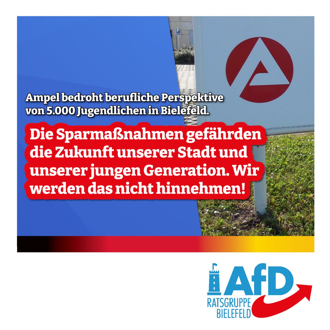 Die geplante Sparpolitik der Ampel gefährdet die Zukunft von mehr als 5.000 jungen Bielefelderinnen und Bielefeldern ohne Jobperspektive. Die Verlagerung der Arbeitsmarkt-Förderung für Bürgergeldempfänger unter 25 Jahren von den Jobcentern zu den Arbeitsagenturen wird diejenigen, die bereits benachteiligt sind, zusätzlich belasten. Die finanzielle Last wird einseitig auf die Beitragszahler abgewälzt und die Arbeitsagenturen sind nicht ausreichend vorbereitet, um diese zusätzliche Aufgabe zu bewältigen.Markus Schäfer vom Verein „Berufliche Ausbildung und Qualifizierung Jugendlicher und Erwachsener“ (BAJ) und Vorstandsmitglied der „Arbeitsgemeinschaft Bielefelder Beschäftigungsinitiativen“ (AGBI) warnt vor den negativen Auswirkungen vor Ort. Die bereits etablierte Unterstützung, die im Sinne des „Förderns und Forderns“ den Jugendlichen zugutekam, wird durch die geplante Verlagerung gefährdet. Diese bürokratischen Hürden könnten viele Jugendliche mit erschwerten Startbedingungen auf dem Weg zur Arbeitsmarktintegration behindern. Zudem drohen erhebliche Mittelkürzungen, die die Perspektiven unserer Jugendlichen weiter einschränken. Deshalb hat die AGBI laut der Tageszeitung Neue Westfälische einen Appell an die Bielefelder Bundestagsabgeordneten der Ampel, Wiebke Esdar (SPD), Britta Haßelmann (Grüne) und Jens Teutrine (FDP), gerichtet.Dr. Florian Sander, Vorsitzender und sozialpolitischer Sprecher der AfD Ratsgruppe Bielefeld, verurteilt diese einseitige und kurzsichtige Sparpolitik auf Kosten unserer Jugendlichen: „Wir unterstützen die AGBI grundsätzlich und schließen uns ihrem Appell an. Diese Sparmaßnahmen gefährden die Zukunft unserer Stadt und unserer jungen Generation – das werden wir als AfD nicht hinnehmen. Ich befürchte jedoch, dass der Appell der AGBI gegenüber den drei Ampel-Abgeordneten wenig bringen wird. Sie haben schon dutzende andere Entscheidungen mitgetragen, die den Interessen der Menschen in unserer Stadt und darüber hinaus klar zuwiderliefen.“