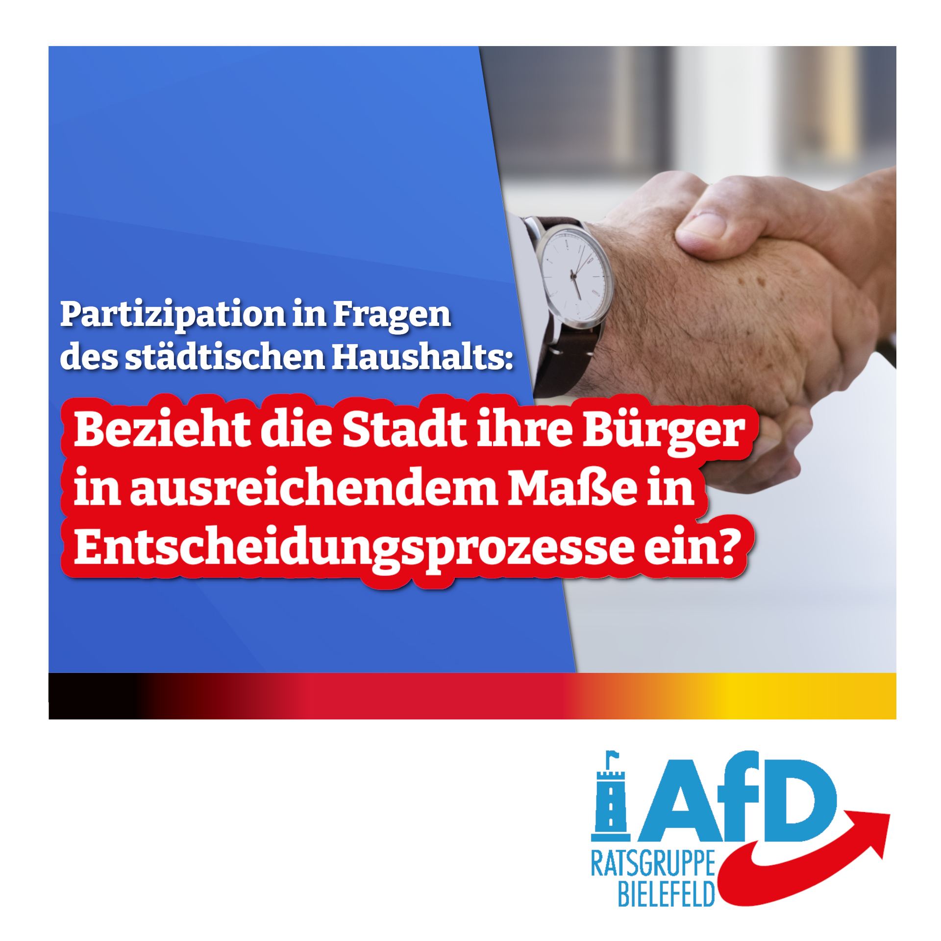 Für den Bielefelder Stadtkämmerer Rainer Kaschel ist die Lage klar: Eindringlich warnte er vor drastischen Entwicklungen im Rahmen der Haushaltslage. Die Folge des Negativtrends könnte eine Haushaltssicherung bedeuten, was eine Kürzung politischer Projekte und Strukturen zur Konsequenz hätte.Dennoch soll die aktive Beteiligung der Einwohner unserer Stadt besonders betont werden. Wir als AfD-Ratsgruppe glauben, dass Bielefelds Bürger sowohl viele kreative Ideen für mögliche Kosteneinsparungen haben als auch ein Verständnis dafür, welche Maßnahmen, Projekte und Institutionen unserer Stadt auf jeden Fall vor Sparmaßnahmen geschützt werden sollten.