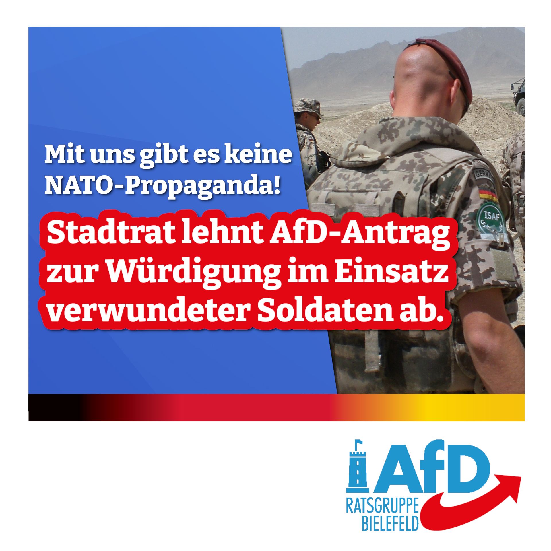 Besonders jene Staatsbürger in Uniform, die in Einsätzen verwundet wurden, verdienen Würdigung. Aus diesem Grund haben wir im Rat der Stadt Bielefeld einen Änderungsantrag eingereicht. Hintergrund: CDU, SPD, FDP und Grüne haben das sehr löbliche Anliegen in den Rat getragen, unsere Bundeswehrsoldaten zu ehren. Auch wenn Vertreter der Partei Die Linke und der Partei DIE PARTEI pauschal alle Soldaten unter rechtsextremistischen Generalverdacht stellten, waren wir positiv von der Initiative überrascht. Allerdings ging uns der Antrag nicht weit genug, weshalb wir einen Zusatz forderten, der Veteranen, also im Dienst versehrte Soldaten, gesondert hervorhebt und ehrt.