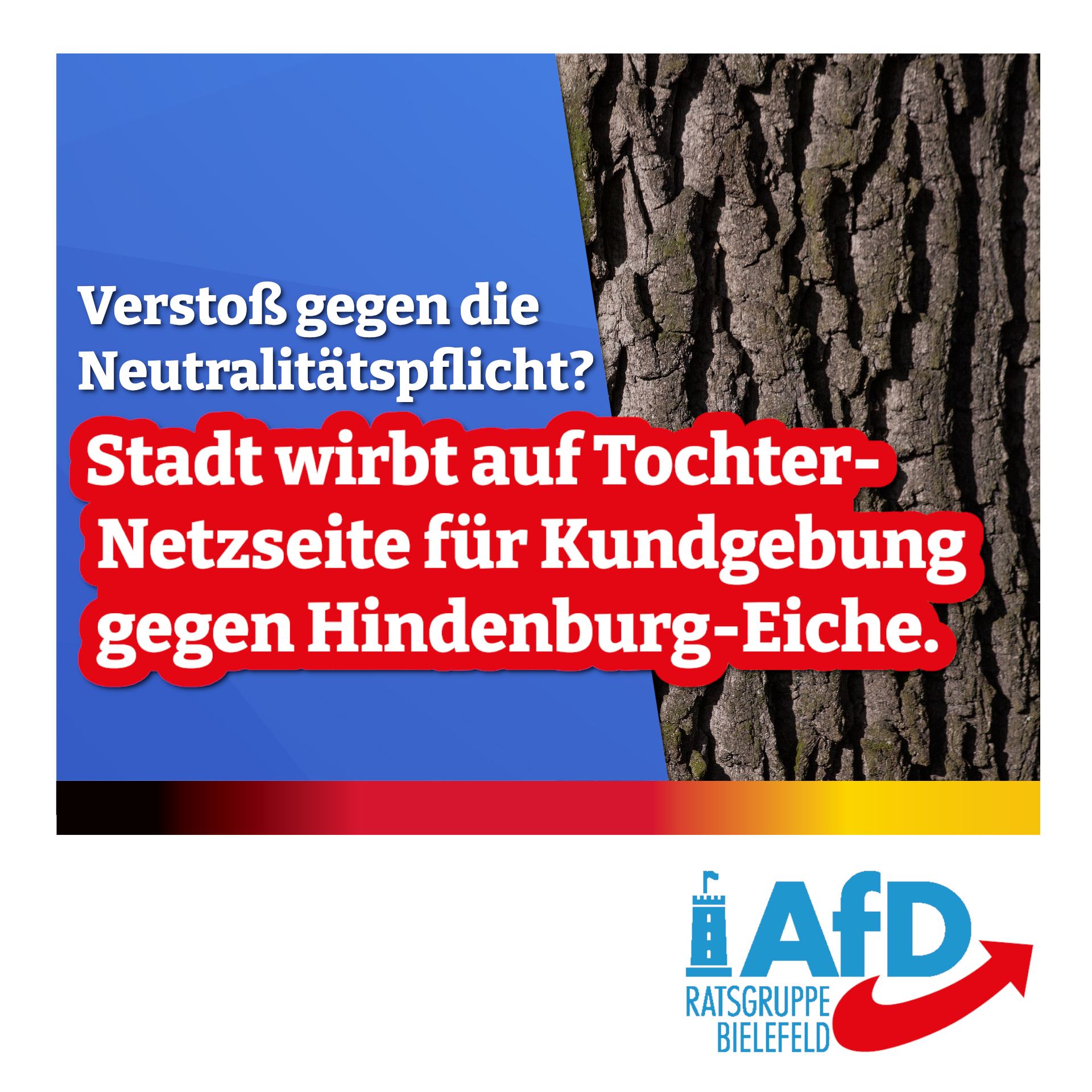 Ein Mitarbeiter einer öffentlichen Einrichtung tritt in seiner offiziellen Beamten-Funktion als Redner einer linken Veranstaltung gegen die „Hindenburg-Eiche“ auf. Offen beworben wird der woke Protest auf der Internetpräsenz des städtischen Tochterunternehmens Bielefeld Marketing. Ein handfester Skandal, fand die Bielefelder Ratsgruppe und trug das Thema prompt in den Rat: