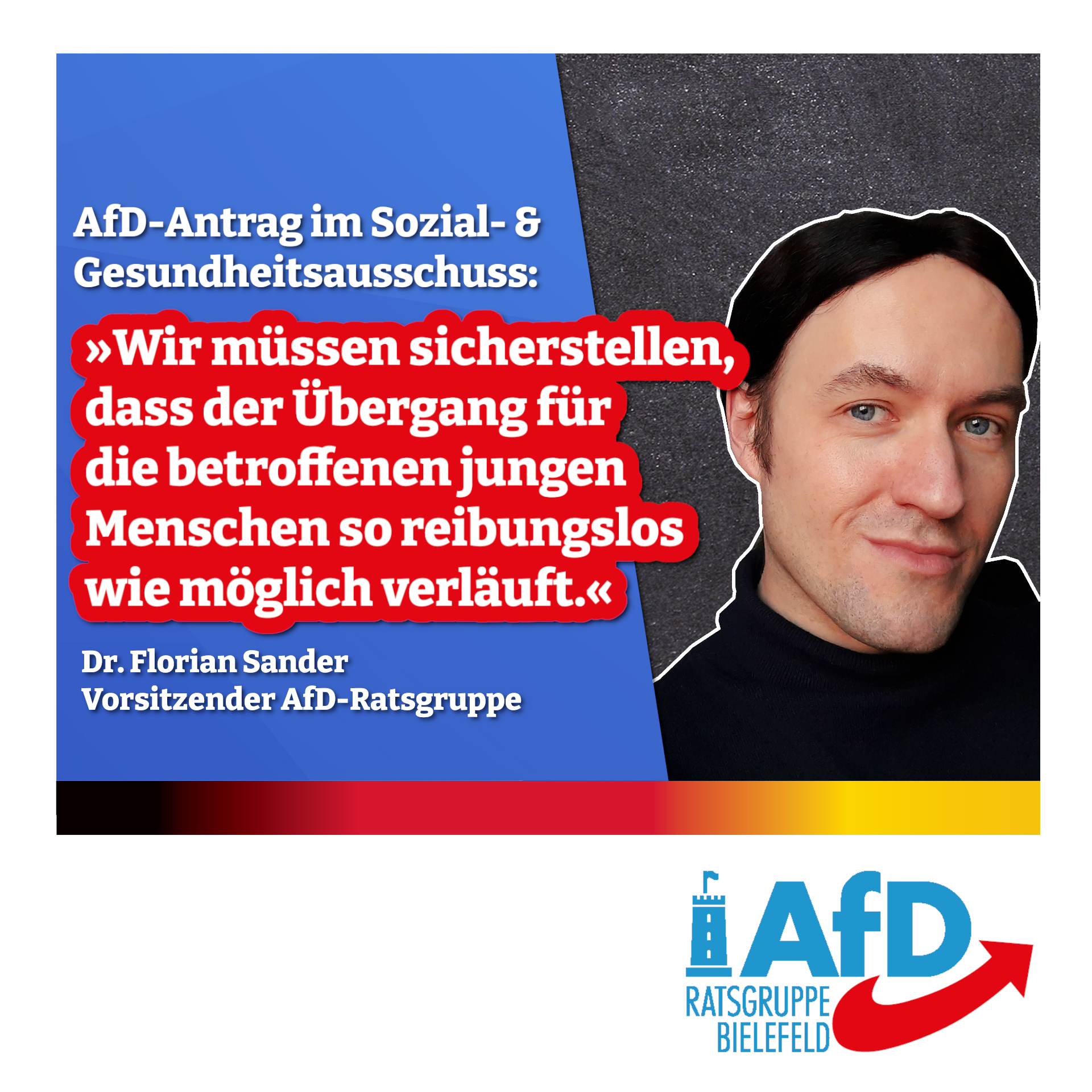 Dr. Florian Sander, Vorsitzender und sozialpolitischer Sprecher der AfD-Ratsgruppe, als Initiator des Änderungsantrags: „Wir fordern, dass die Verwaltung im Falle des Eintretens der geplanten Reform ein Übergangsmanagement einführt, das sicherstellt, dass der Übergang für die betroffenen jungen Menschen so reibungslos wie möglich erfolgt. Dies beinhaltet die Schaffung gut verständlicher Informationsangebote in Zusammenarbeit mit der Bundesagentur für Arbeit und anderen relevanten Akteuren. Diese Informationsangebote sollen den Betroffenen klare Antworten auf ihre Fragen bieten und sicherstellen, dass sie nicht allein gelassen werden.“