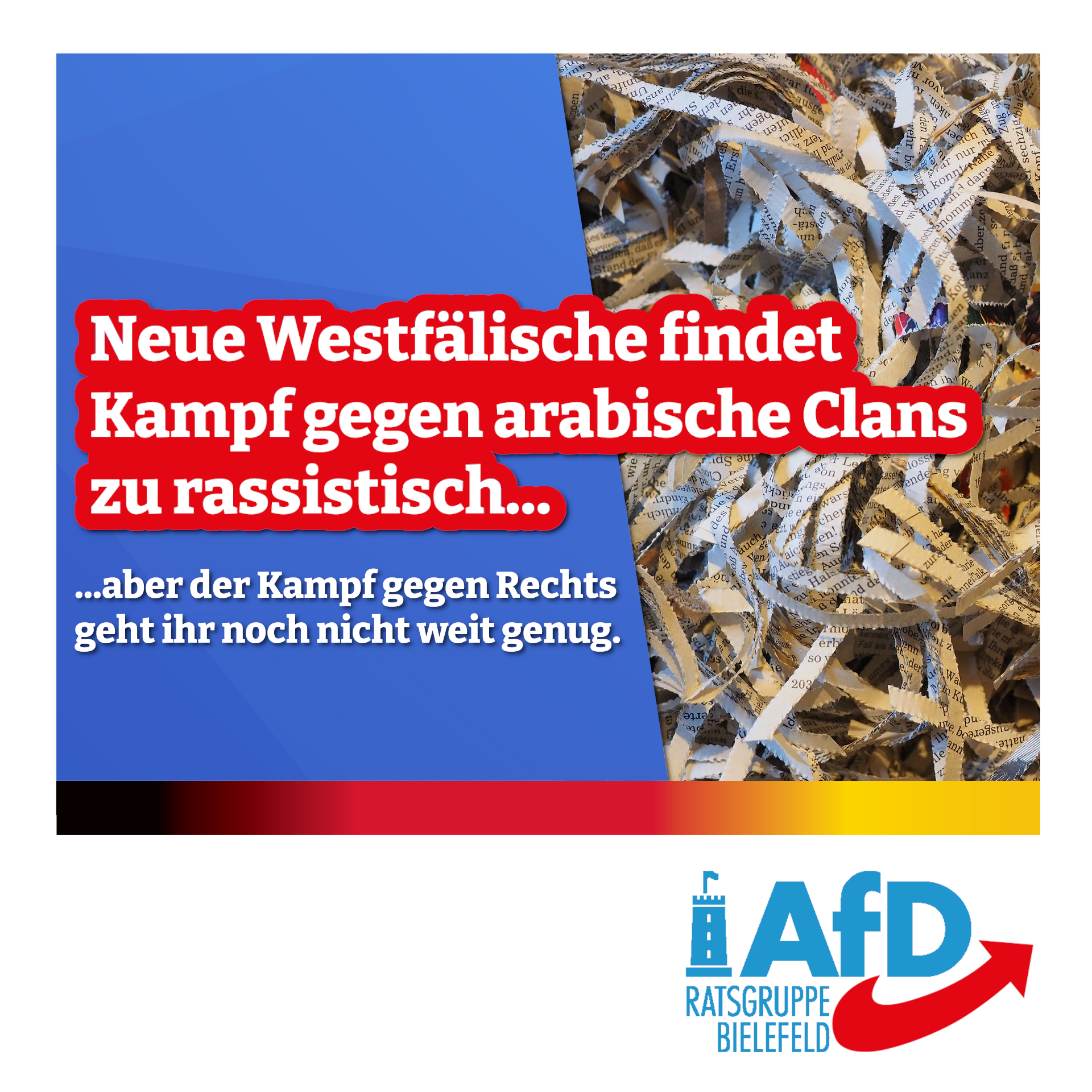 2020 wurde bekannt: Bielefeld steht in OWL auf Platz 2 in Sachen Clan-Kriminalität. Zwar kann die Leineweberstadt noch nicht mit Hochburgen wie Essen, Gelsenkirchen oder Recklinghausen mithalten, aber auch hier machen sich Mitglieder krimineller Großfamilien breit.Innenminister Herbert Reul (CDU) setzt dabei auf medienwirksame Razzien. Tituliert wird die vorgebliche Strategie als „Politik der tausend Nadelstiche“. Der sich zu 100 Prozent im Besitz der SPD-Medienholding befindenden Tageszeitung „Neue Westfälische“ (NW) ist der Kampf gegen kriminelle Clan-Strukturen offenbar zu „rassistisch“. In der Ausgabe vom 8. Juli schreibt NW-Redakteur Florian Pfitzner, der auch häufiger durch seine (gern als Berichte getarnten) Anti-AfD-Kommentare auffällt, in Bezug auf Reul: „Fragwürdig sind gewiss seine öffentlichkeitswirksamen Razzien in Cafés und Shisha-Bars, die gesamte Menschengruppen an den Pranger stellen.“Für Dr. Florian Sander, Vorsitzender AfD-Ratsgruppe Bielefeld, ist das reine Doppelmoral: „Im Falle öffentlichkeitswirksamer Reichsbürger-Razzien, bei denen gefühlt jedes Kamerateam der Republik anwesend war, fand es die NW nie ‚fragwürdig‘, diese im Nachhinein immer wieder in einen Zusammenhang mit der AfD zu rücken. Im Gegenteil: Sie beteiligt sich eifrig daran, die AfD und ihre Wählerschaft unter den Generalverdacht des Extremismus zu stellen. Bei libanesischen und syrischen Clans hingegen drückt die SPD-Presse aber offensichtlich gerne mal ein Auge zu – da ist sie dann ganz schnell, mit dem obligatorischen Warnen vor Rassismus und Generalverdacht.“AfD-Ratsherr Maximilian Kneller fordert: „Innenminister Reuls Maßnahmen sind vielmehr als zu lasch zu beurteilen. Immer noch treiben tausende Clan-Mitglieder in NRW ihr Unwesen. Dutzende davon in Bielefeld. Angehörige krimineller Großfamilien müssen sofort abgeschoben und deutsche Staatsangehörigkeiten gegebenenfalls konsequent entzogen werden. Unerwünschte Migration nach Deutschland gehört unterbunden. Nur so kann Clan-Kriminalität effektiv bekämpft werden und NRW seine Stadtteile zurückerobern.“