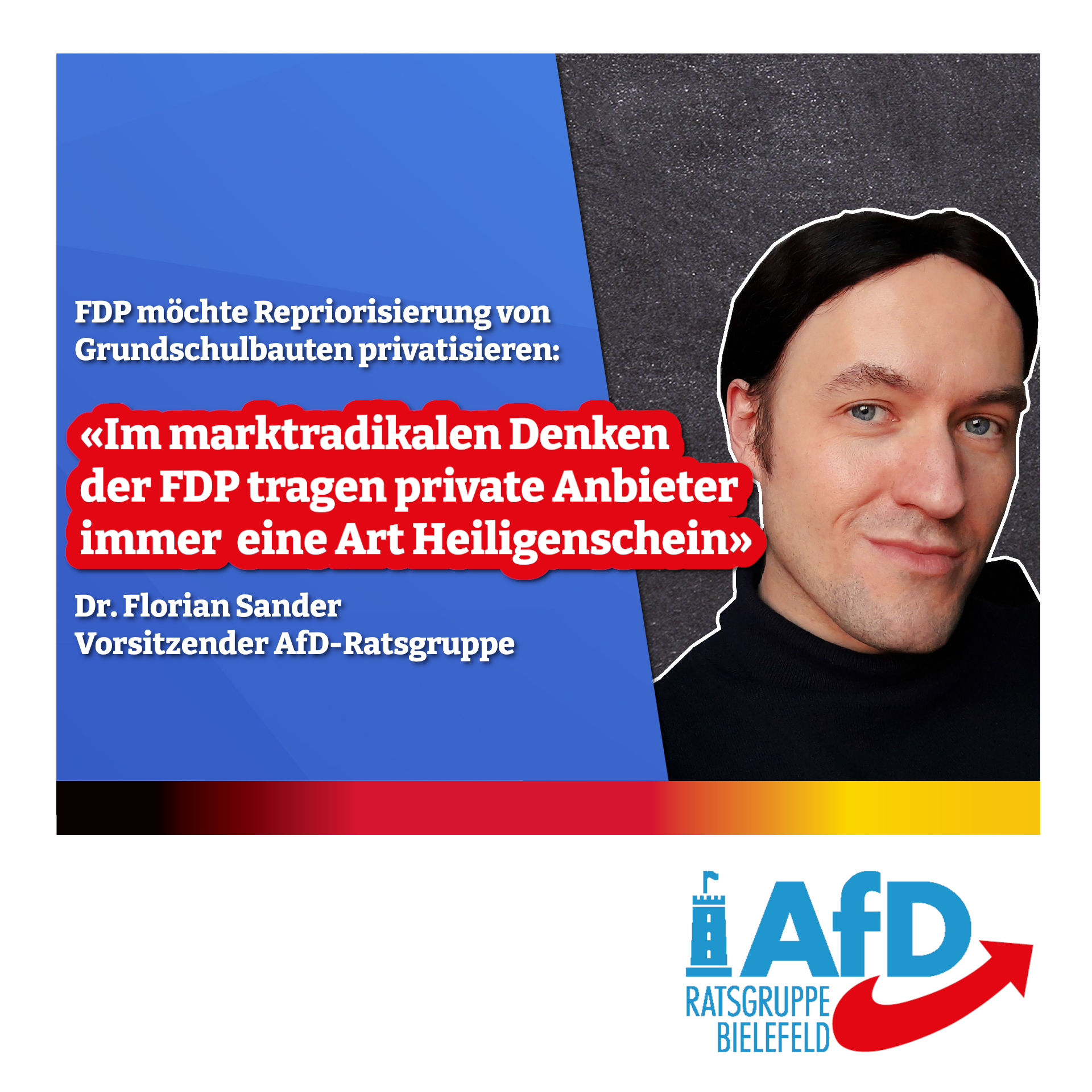 Die FDP möchte das städtische Bauprogramm überarbeiten und die Repriorisierung von Grundschulbauten am liebsten privaten Firmen überlassen und hat einen entsprechenden Änderungsantrag zum städtischen Bauprogramm gestellt. Diese Initiative hat Dr. Florian Sander in der letzten Ratssitzung kritisiert: