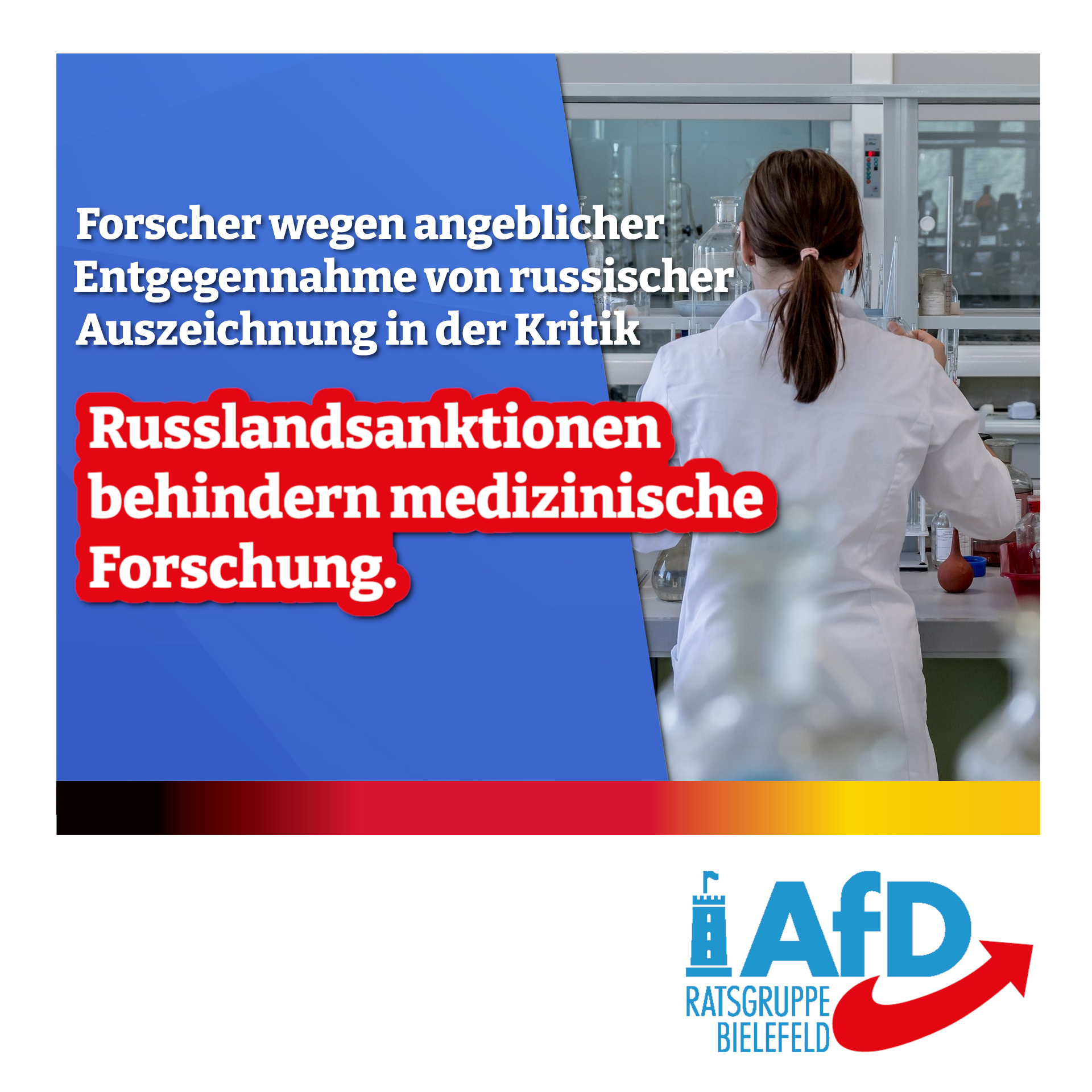 Dr. Florian Sander, Vorsitzender der AfD im Bielefelder Stadtrat, erkennt ein Symptom: „Mal abgesehen davon, dass die NW wieder einmal unbescholtene Bürger an mediale Pranger stellt und diesmal sogar bei einem verdienten Wissenschaftler nicht davor zurückschreckt, macht der Fall deutlich, dass die Russland-Sanktionen neben steigenden Energiepreisen und einer drohenden Kriegsgefahr auch Auswirkungen auf das Gesundheitswesen hat. Wenn Mediziner verschiedener Staaten kooperieren möchten, um Menschenleben zu retten, ist das, besonders im Angesicht feindseliger Außenpolitik, kein Tabubruch, sondern begrüßenswert.