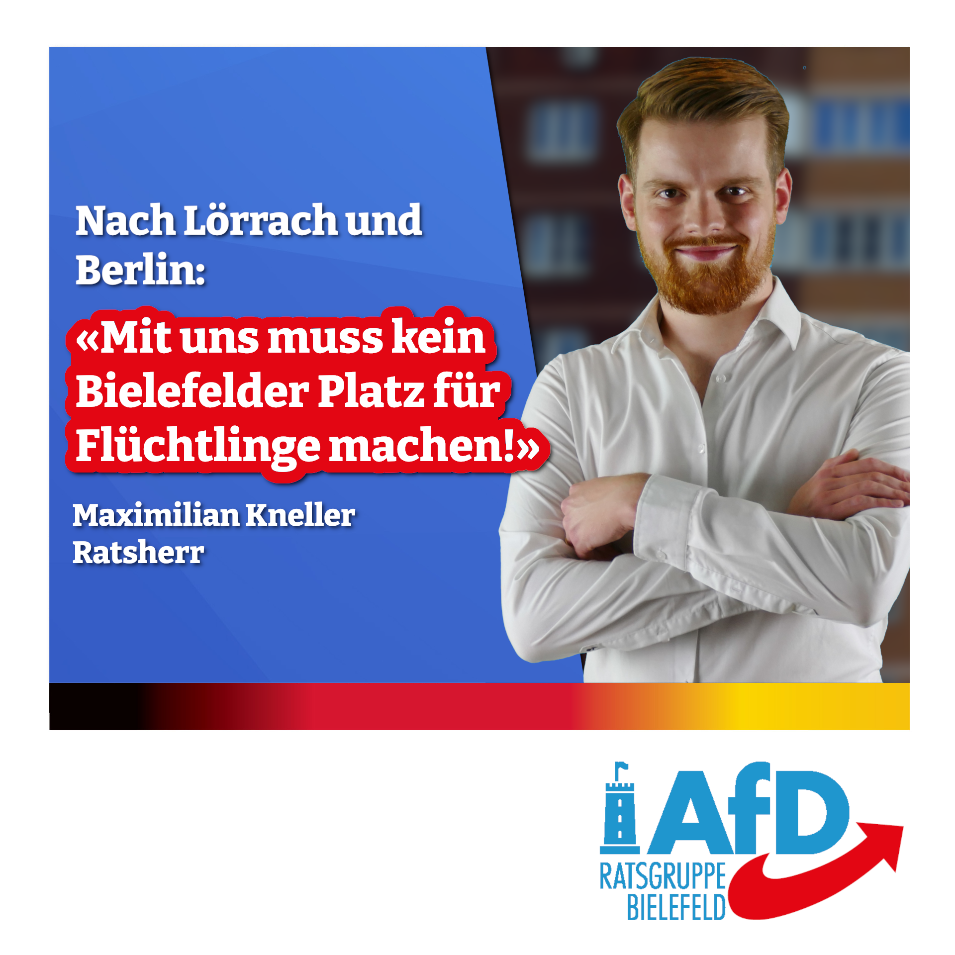 Maximilian Kneller stellt klar: „Wer in aller Welt das Mantra »Wir haben Platz!« verlautbaren lässt und die Stadt Bielefeld öffentlichkeitswirksam zum »sicheren Hafen“ erklärt, der muss auch die Frage beantworten, wo dieser Platz ist. Wer, wie das Land Nordrhein-Westfalen 64.000 ausreisepflichtige Ausländer duldet und nicht abschiebt und gleichzeitig immer neue Personen ohne Bleibeperspektive ins Land holt, der macht sich schuldig, genau diese Verteilungskämpfe zu befeuern. Die Stadt Lörrach schafft mit der offenen Priorisierung Fremder gegenüber den eigenen Bürgern einen gefährlichen Präzedenzfall, der für die Stadt Bielefeld und ihre Bürger dringend kategorisch ausgeschlossen werden muss.“