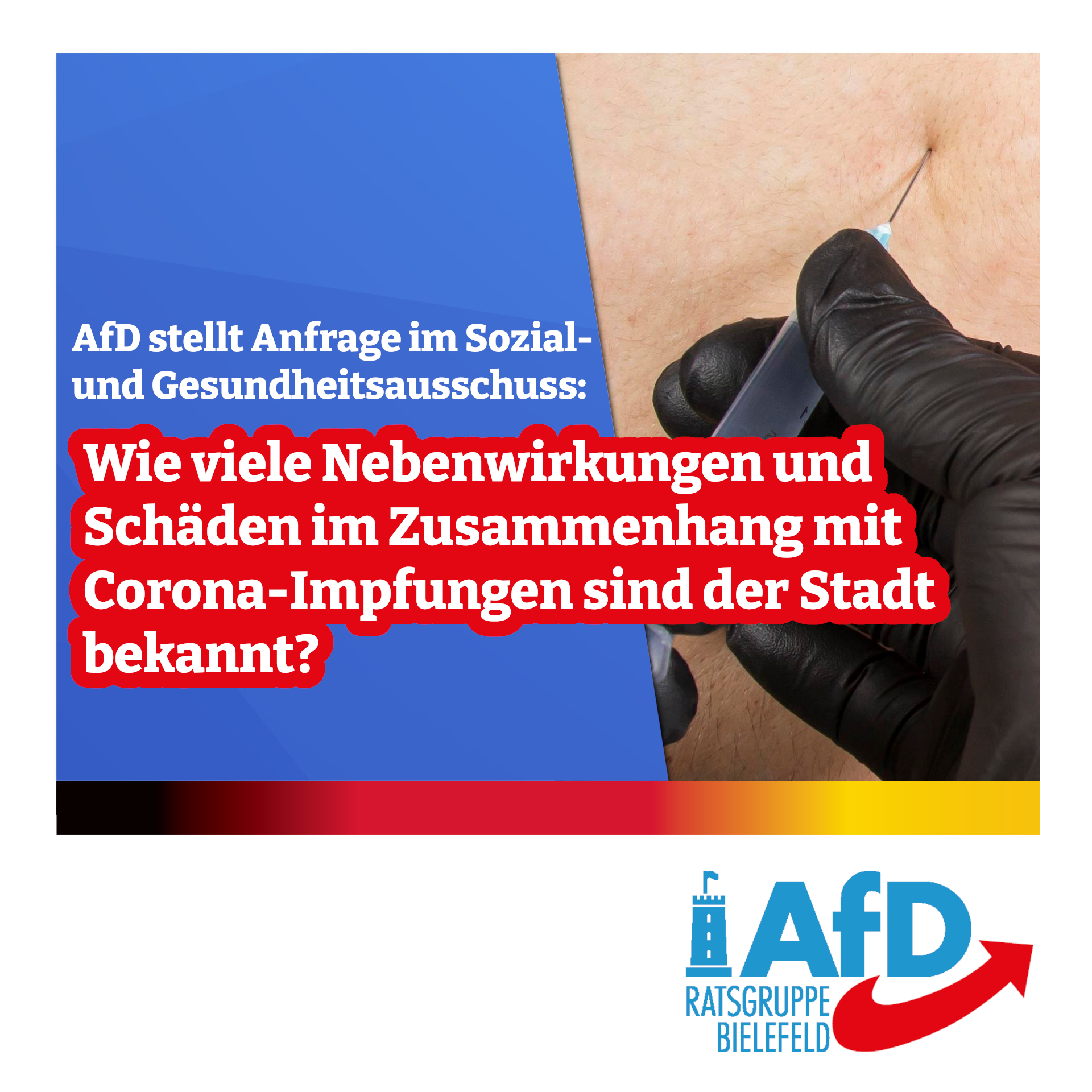Die Stadt hat sich in den vergangenen Jahren trotzdem immer wieder für Massenimpfungen eingesetzt, weshalb für uns eine klare kommunale Verantwortlichkeit zu erkennen ist. Dr. Florian Sander, Vorsitzender der AfD-Ratsgruppe Bielefeld und ihr Vertreter im Sozial- und Gesundheitsausschuss, hat deshalb eine Anfrage an die Stadtverwaltung initiiert. Zum einen möchten wir wissen, ob schwere Fälle von Nebenwirkungen und Schäden durch die Corona-Impfungen in Bielefeld registriert werden und falls ja, wie viele bisher bekannt sind. In diesem Zusammenhang möchten wir auch Auskunft darüber, wie sich die Sterberaten in Bielefelder Seniorenheimen zwischen 2019 und 2022 entwickelt haben.