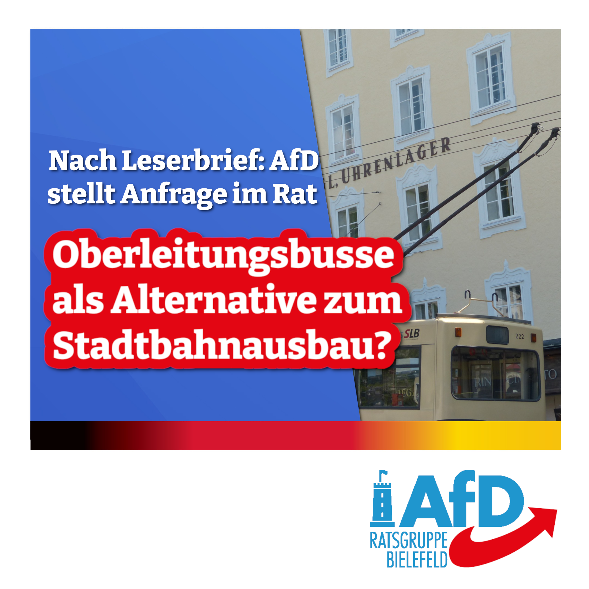 Dr. Florian Sander, umweltpolitischer Sprecher der AfD-Ratsgruppe und Initiator der Anfrage, begründet die Initiative: „Wir sehen uns als Stimme der Bürger im Rat, weshalb wir sehr gerne konstruktive Vorschläge aus der Bevölkerung umsetzen. Außerdem steht schon in unserem Programm zur Kommunalwahl 2020, dass wir die Prüfung einer Installation eines – andernorts und früher durchaus bewährten und ökologisch nachhaltigen – Oberleitungsbus-Systems anstreben und unterstützen. Diesem Versprechen an unsere Wähler kommen wir mit den uns als Ratsgruppe gegebenen Mitteln nun nach.“