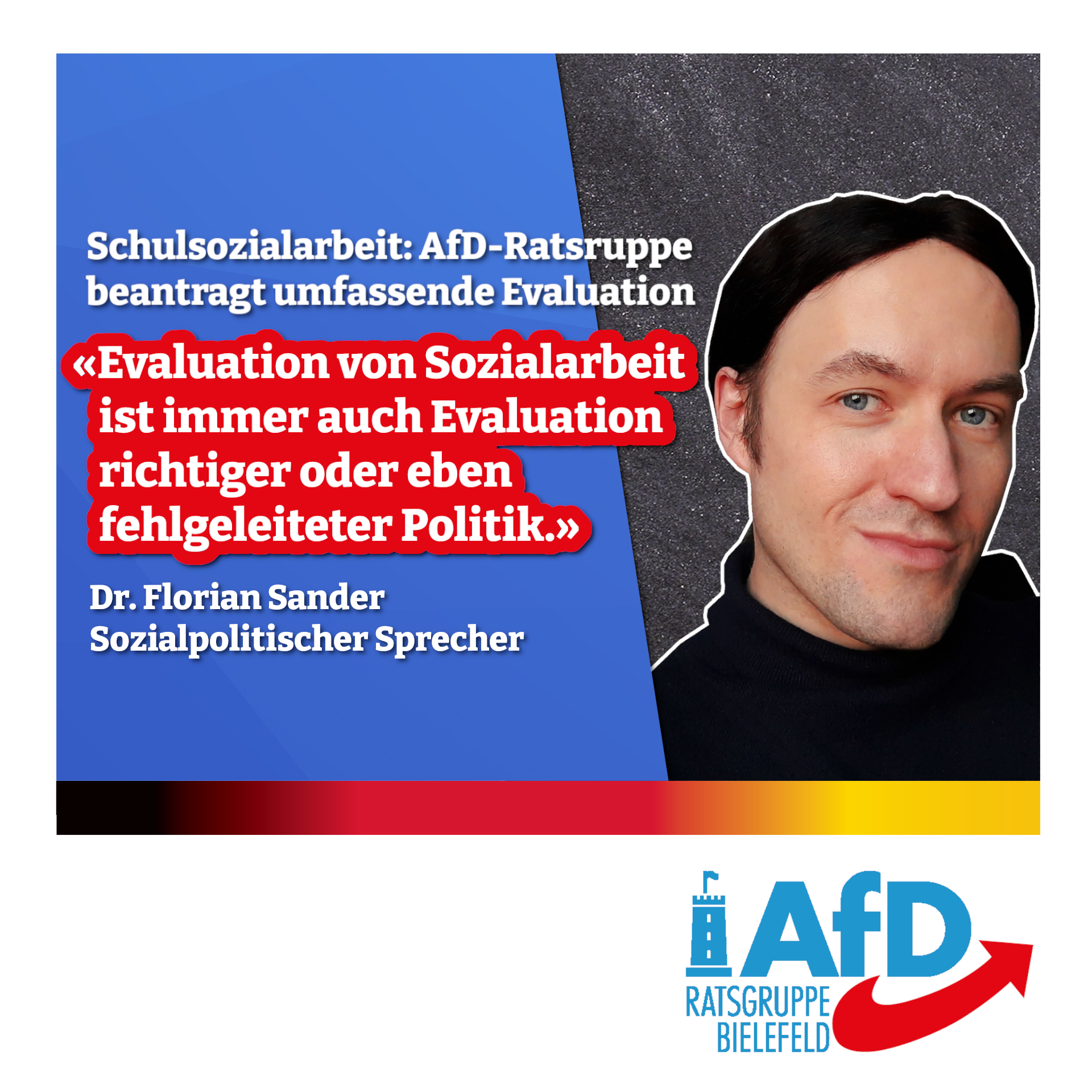 Dr. Florian Sander, sozialpolitischer Sprecher der AfD-Ratsgruppe, erläutert die Problematik der Beschlussvorlage der Stadtverwaltung: „Es genügt zur Begründung und Legitimation von Schulsozialarbeit auf Dauer nicht, immer nur auf stadtgesellschaftliche Problemlagen und diffuse „Bildungsrelevante Soziale Belastungsfaktoren“ zu verweisen, wie es in der Beschlussvorlage der Fall ist. Langfristig ist hier eine genauere, quantifizierbare und auch Problemverhältnisse wiedergebende Ursachenerfassung nötig, welche auch Rückschlüsse erlaubt, die der Aufarbeitung etwaiger politischer (Fehl-)Entscheidungen dienen können. Evaluation von Sozialarbeit ist schließlich immer auch Evaluation richtiger oder eben fehlgeleiteter Politik.“