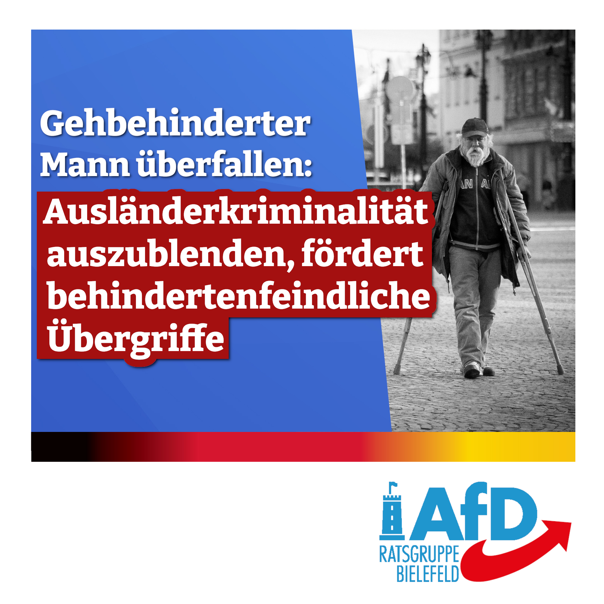 Für Dr. Florian Sander, Vorsitzender der AfD im Stadtrat und selbst Rollstuhlfahrer, ist die Lage eindeutig: „Wer Ausländerkriminalität ausblenden will, fördert dadurch auch behindertenfeindliche Übergriffe! Zwar ist die Benennung der Tätergruppe ein guter erster Schritt, aber in der Konsequenz müssen Taten folgen. Erhöhte Polizeipräsenz hätte den Überfall womöglich verhindern können. Straffällig gewordene Ausländer müssen abgeschoben werden und eingebürgerten Tätern mit ‚Doppelpass‘ muss der Verlust der deutschen Staatsbürgerschaft drohen.“