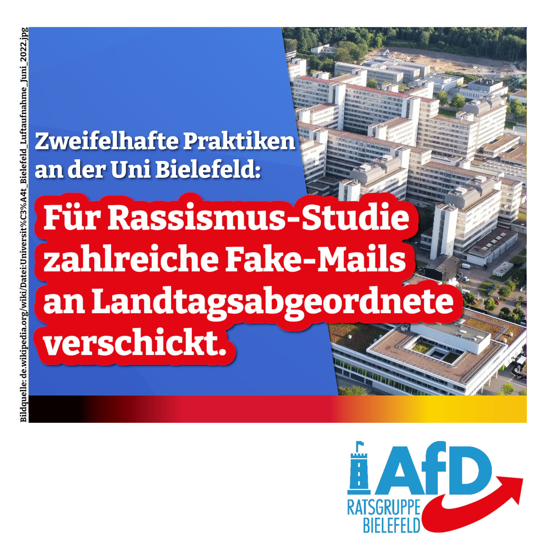 Das Institut für interdisziplinäre Konflikt- und Gewaltforschung der Uni Bielefeld hat im Rahmen einer „Rassismus-Studie“ Fake-Nachrichten an Landtagsabgeordnete in ganz Deutschland verschickt. Unter falschen ausländischen Namen wurden Mitglieder aller Landtage kontaktiert, um Praktikumsplätze anzufragen. Dabei sollte herausgefunden werden, ob ausländische Bewerber in Bundesbehörden strukturell benachteiligt werden.