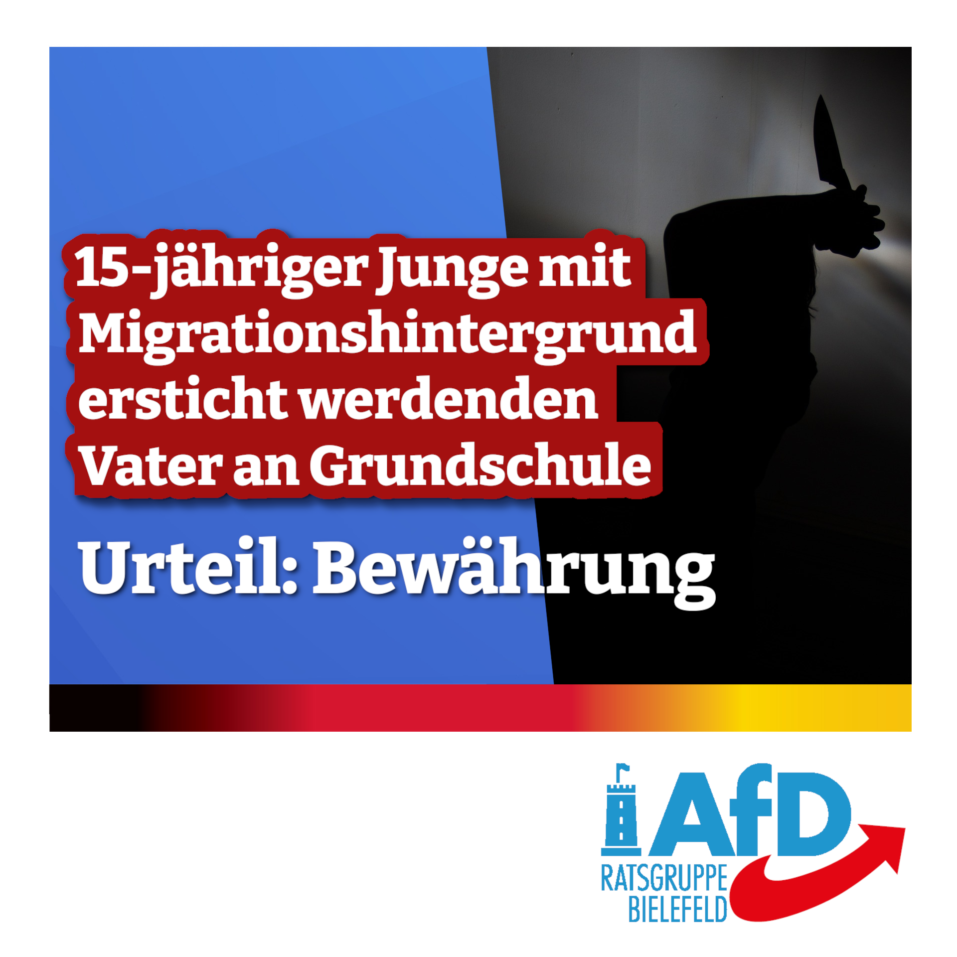21.01.2023 – 15-jähriger mit Migrationshintergrund ersticht werdenden Vater an Grundschule und kommt mit Bewährungsstrafe davon