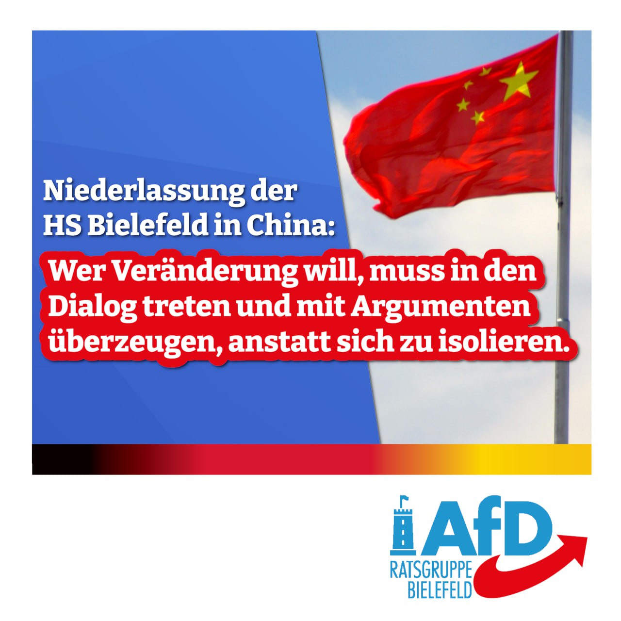 Die AfD-Ratsgruppe Bielefeld begrüßt die neue Kooperation ausdrücklich. „Bielefeld will Hochschul- und Wissenschaftsstadt sein. Dazu gehört insbesondere auch internationale Kooperation, nicht zuletzt mit wichtigen Handelspartnern Deutschlands“, erklärt Dr. Florian Sander, Vorsitzender der Ratsgruppe und selbst früherer Fachhochschuldozent. „Die Vorstellung, nur noch mit Staaten zu kooperieren, deren politisches System den Vertretern der Bundesregierung in den Kram passt, ist widersinnig und kleingeistig. Da würden dann am Ende nur noch sehr wenige Kooperationspartner übrigbleiben.“ Gerade wer Veränderung bewirken wolle, müsse in den Dialog treten und mit Argumenten überzeugen anstatt sich zu isolieren, so Sander. „Eine spannende Frage wäre auch: Hätten die Kritiker bei einer Kooperation mit der autokratisch-islamistisch regierten Türkei oder mit Saudi-Arabien genauso reagiert? Ich bezweifle es.“