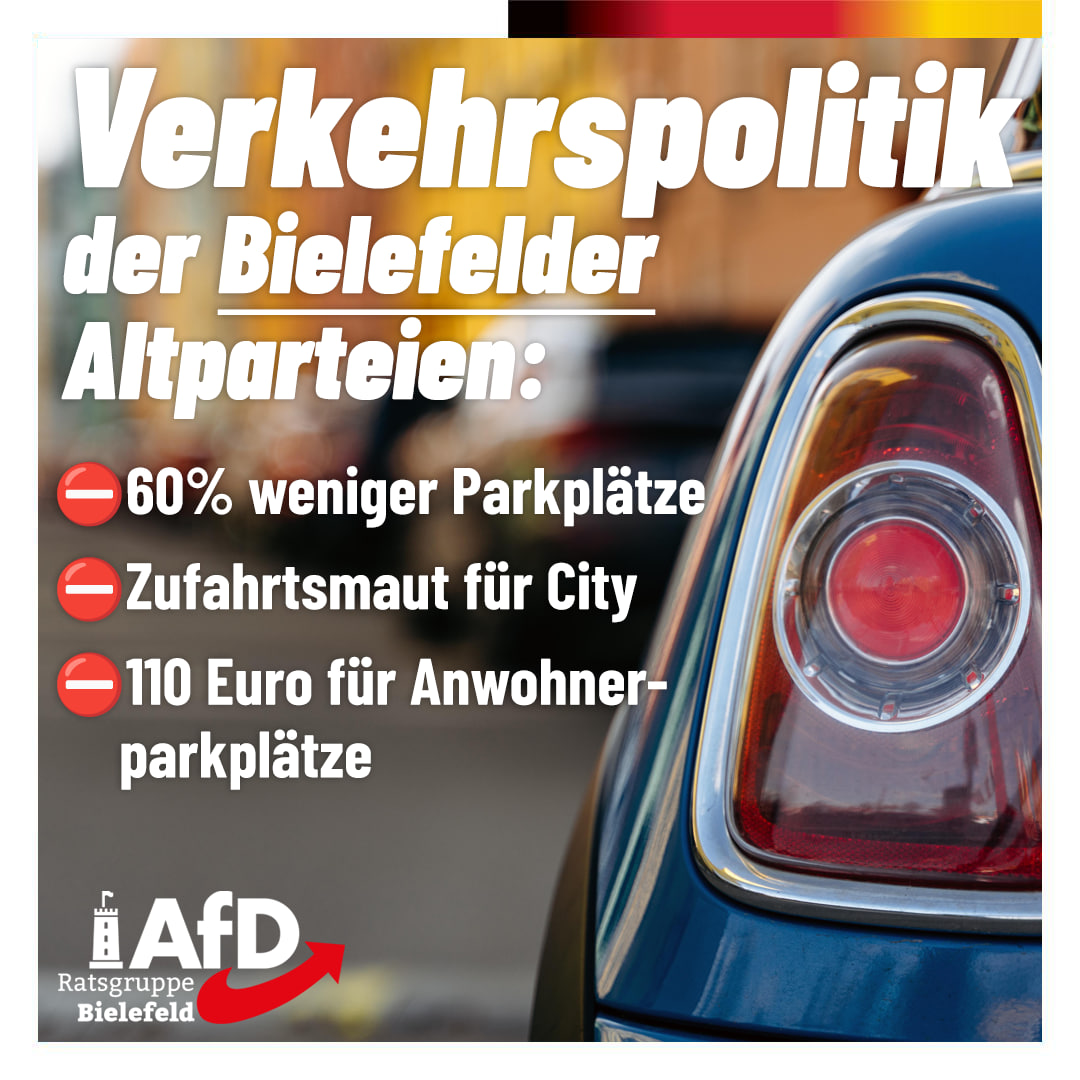 Der Bielefelder Verkehrsdezernent Martin Adamski (Bündnis 90/Die Grünen) plant weitreichende Schikanen gegen Autofahrer. Dazu gehören die Einführung einer möglichen Zufahrts-Maut für die Innenstadt, der Abbau von 60 % der Parkplätze im Zentrum sowie monatliche Gebühren von 110 Euro für Stellplätze in Quartiersgaragen. Zudem sollen in mehreren Stadtteilen Anwohner künftig für das Parken auf der Straße zahlen, mit einer schrittweisen Ausweitung auf weitere Gebiete. Die Maßnahmen zielen bewusst darauf ab, den Autofahrern in Bielefeld das Leben schwerzumachen. Das kommuniziert Adamski auch ganz offen. In einer Beschlussvorlage ist die Rede von Planungen, „die die Restriktion des motorisierten Individualverkehrs zum Ziel haben“. Auf gut Deutsch: Bielefelder und Bielefelderinnen, die auf ein Auto angewiesen sind, sollen künftig kräftig zur Kasse gebeten werden.