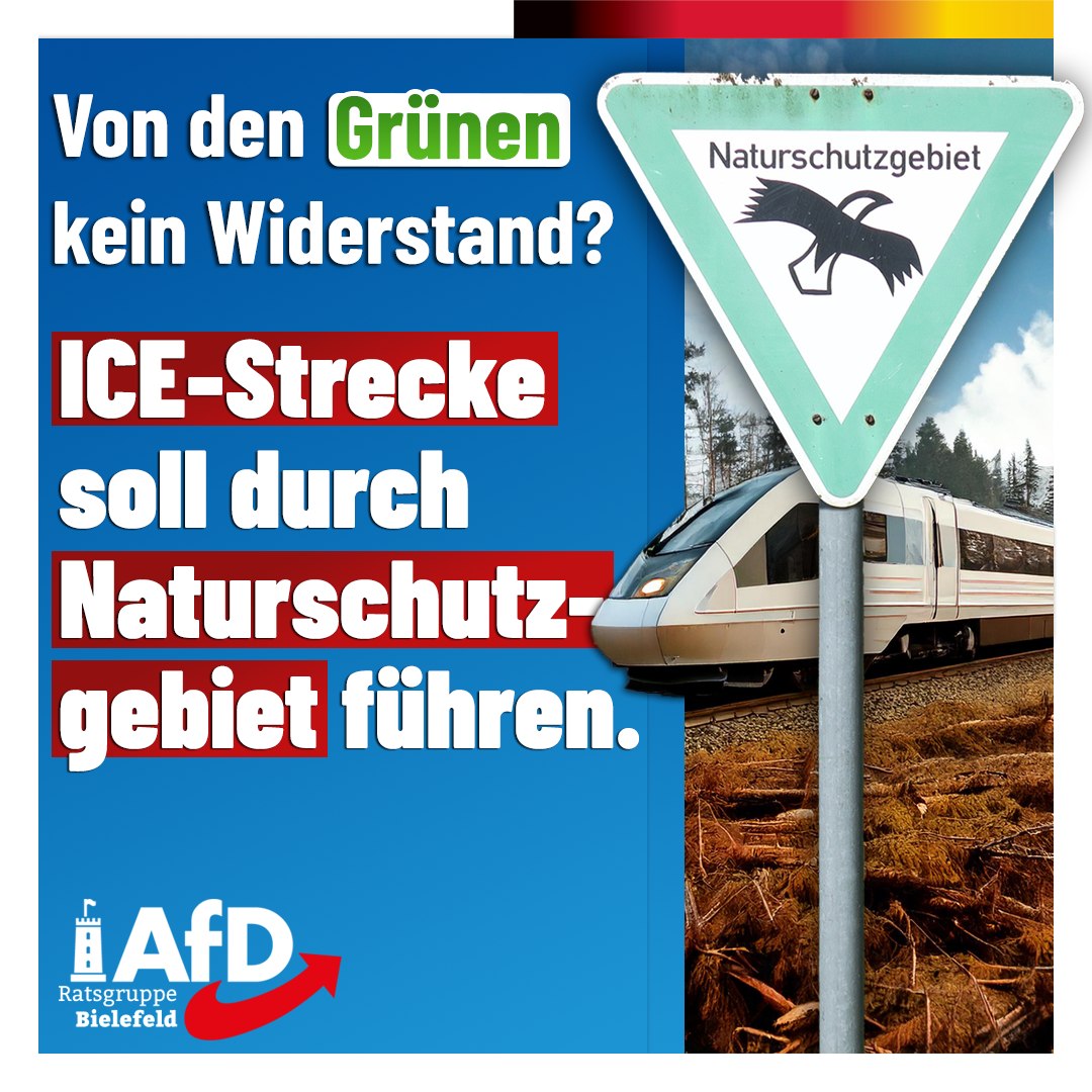 Dr. Florian Sander, Vorsitzender der AfD-Ratsgruppe Bielefeld und selbst Pendler, der die Strecke mehrmals im Monat befährt, hält fest: „Die geplante ICE-Trasse durch das Naturschutzgebiet Große Bruch am Wellbach stellt einen massiven Eingriff in ein sensibles Ökosystem dar. Von den Grünen hört man dazu bisher erstaunlich wenig. Statt einem solchen Projekt, das den angeblichen ökologischen Grundsätzen der Grünen widerspricht, sollte die Stadt gemeinsam mit der Bahn alternative Lösungen fördern, wie die Modernisierung bestehender Trassen oder modernere, umweltschonende Verkehrslösungen. Es ist an der Zeit, dass Bielefelds Koalition den Schutz der Natur ernst nimmt, konsequent handelt und den realitätsfernen Plänen der Deutschen Bahn den Riegel vorschiebt. Diese sollte lieber erst einmal ihre bestehenden Probleme in den Griff kriegen und gewährleisten, dass die Züge überhaupt ankommen, anstatt für 20 Minuten Beschleunigung Naturschutzgebiete zu zerstören.“