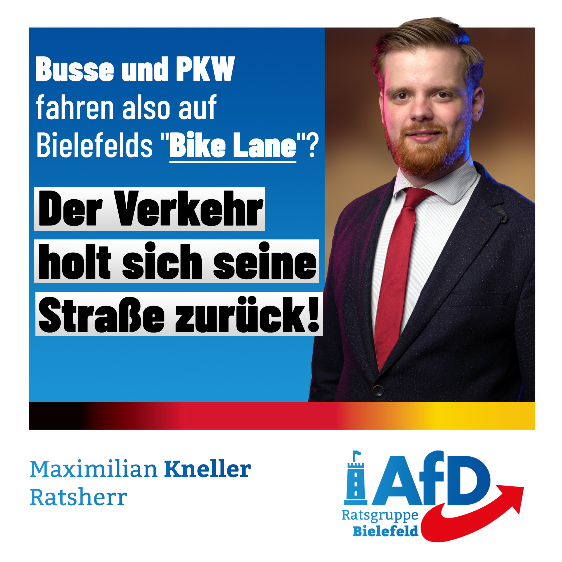 Maximilian Kneller, AfD-Ratsherr und seinerzeit Initiator der Anfrage, fühlt sich bestärkt: „Da wir keinen Fraktionsstatus haben und lediglich als Ratsgruppe agieren können, sind unsere Mittel eingeschränkt. Aber im Rahmen unserer Möglichkeiten tun wir, was wir können, um den Altparteien, respektive der Ratskoalition, auf die Finger zu schauen und sie zu kontrollieren. Das ist immer wieder von Erfolg gekrönt, wie in der Angelegenheit des Fahrrad-Filmchens oder im August in Stieghorst, wo dank unserer Stimme eine ganztägige Tempo-30-Beschränkung auf der Detmolder Straße verhindert werden konnte. Diese und andere Fälle zeigen: AfD wählen hilft, auch in der Opposition.“