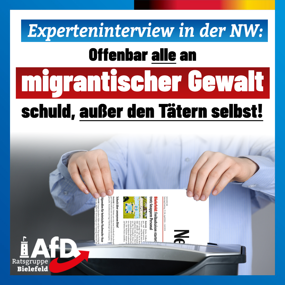 Vor kurzem sah sich die NW zu einem Interview mit dem Wissenschaftler und Kriminologen Thomas Feltes veranlasst. Hintergrund war die jüngst erschienene Polizeiliche Kriminalstatistik für das Jahr 2023. In Bielefeld ist die Entwicklung der Gewaltkriminalität der letzten zehn Jahre explodiert und zwischen 2013 und 2023 um 76,52 Prozent angestiegen. In den Zahlen für den Bund spiegelt sich wider, dass die Kriminalitätsrate besonders bei jungen Ausländern in die Höhe geschossen ist. Weil nicht sein kann, was nicht sein darf, hat die SPD-Tageszeitung NW mit Herrn Feltes auch prompt einen Kriminologen zur Hand, der dem unwissenden Leser erklärt, wer wirklich schuld ist: Natürlich der Deutsche selbst. Für Feltes ist klar: Es werden „Themen und Delikte aufgebauscht“. Feltes relativiert weiter: Raub, Mord und Vergewaltigung verursachen „in Wahrheit viel weniger gesellschaftlichen Schaden“ als „Wirtschaftskriminalität“. Außerdem sind für Feltes die Opfer von Verbrechen scheinbar selbst das Problem, weil „Menschen mit nicht-deutscher Staatsangehörigkeit“ von ihnen „häufiger angezeigt und angeklagt werden“. Ebenfalls macht Feltes die sozialen Umstände der Täter mitverantwortlich, „da es sich hier meist um junge Männer in sozial prekären Lagen handelt“. Von diesen Aussagen ist die NW so überzeugt, dass sie diese Statements seit ihrer Erstveröffentlichung mehrmals wiederverwertet hat.